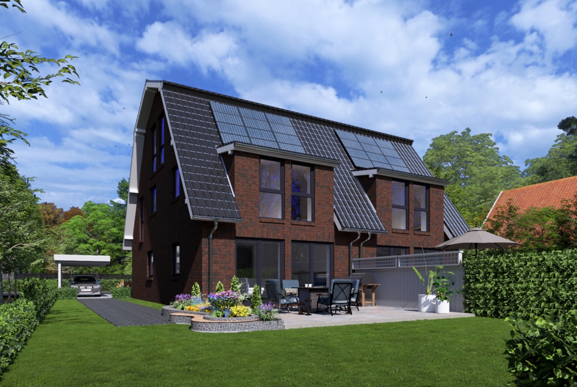 Modernes Bauprojekt für zwei Doppelhaushälften mit sonniger Süd-Ausrichtung in Hamburg-Hummelsbüttel.